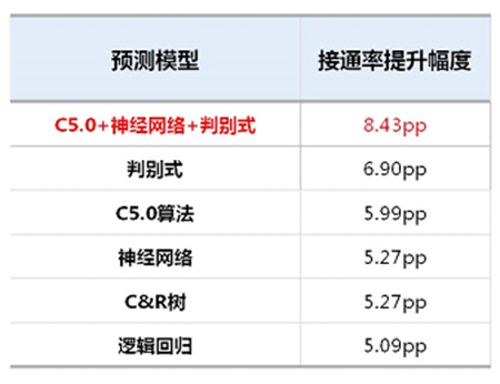 接通客戶是電話營銷得以開展的立身之本,使用數(shù)學預測模型可有效提升外呼接觸的精準度。選擇不同模型和樣本規(guī)模,其效果存在一定差異,建議通過多個模型對比來確定與企業(yè)情況相匹配的最佳組合。