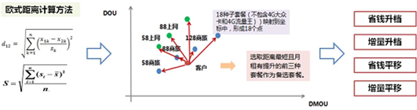 福特曾說過:如果你問顧客需要什么,他們會說需要一輛更快的馬車。對于非專業(yè)的客戶,他們對于哪些產(chǎn)品可以更好地滿足自己需求往往知之甚少。大多數(shù)情況下客戶使用的產(chǎn)品與其需求之間存在一定程度的錯配并反映在消費數(shù)據(jù)中。以手機流量業(yè)務為例,在流量使用超出套餐范圍的情況下辦理更高檔次的套餐可有效降低支出,但客戶卻因不了解而錯失省錢的機會。佛山中心通過提取客戶ARPU、MOU、DOU等消費數(shù)據(jù)與客戶在用套餐包含的語音、流量內(nèi)容進行對比,為每個客戶輸出個性化的業(yè)務辦理標簽,包括省錢升檔、增量升檔、省錢平移和增量平移4種選擇,較常規(guī)隨機外呼辦理率提升66%,營銷價值獲得客戶高度認可(如圖5)。