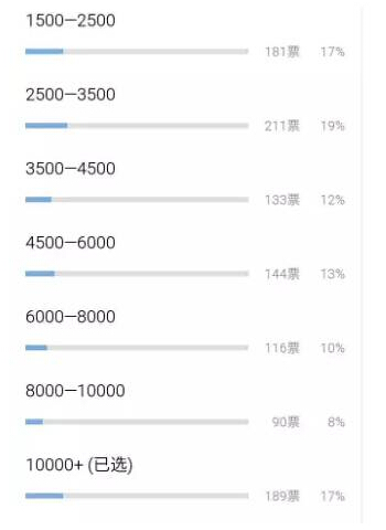 通過圖我們可以看到4500以上的收入人群合計站到了48% ,3500-4500占了12%,剩余就是基礎生活成本工資了!