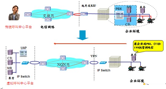 在CCOD(虛擬呼叫中心)的支持下企業(yè)不需要投入任何呼叫中心系統(tǒng)的軟硬件,只需向運營商申請?zhí)摂M呼叫中心資源,企業(yè)就可以迅速建立起自己的呼叫中心系統(tǒng)。