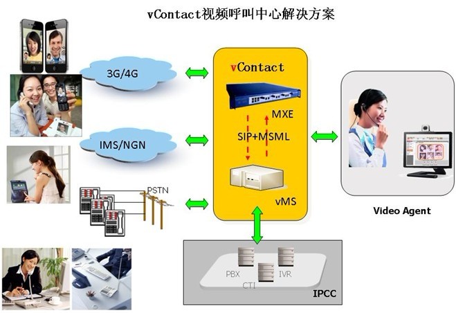 隨著3G時代到來,無線網(wǎng)絡(luò)帶寬瓶頸已經(jīng)得到解決,同時運(yùn)營商建設(shè)了IMS(IP多媒體子系統(tǒng))成為新的業(yè)務(wù)增長點,所以,呼叫中心逐漸走向視頻呼叫中心,視頻體驗已經(jīng)成為一大亮點。視頻呼叫中心最大的特點就是視頻交互,即視頻IVR、視頻通話、視頻會議、視頻/文字推送,……