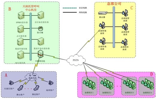 • 采用天潤(rùn)融通大平臺(tái)托管呼叫中心平臺(tái),將座席分布部署在當(dāng)?shù)馗餍^(qū)內(nèi);