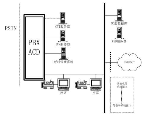 基于交換機式的呼叫中心的硬件架構(gòu)如下:
