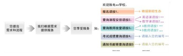 根據(jù)客戶可能的服務(wù)需求,在語(yǔ)音導(dǎo)航中設(shè)置招生報(bào)名、課程安排、教師坐堂查詢、考試成績(jī)查詢、通知書郵寄查詢、試聽(tīng)報(bào)名等服務(wù)內(nèi)容和導(dǎo)引流程,客戶撥打400電話,即可享受各項(xiàng)語(yǔ)音自助服務(wù)。