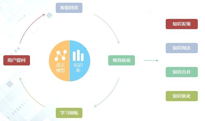 靈云智能客服系統(tǒng)上線后,圍繞智能問答核心,會根據(jù)用戶問答數(shù)據(jù),對知識庫進行維護,再使用維護后的知識庫對語義模型進行訓(xùn)練,不斷自我學(xué)習(xí)、自我迭代,持續(xù)提高問答準(zhǔn)確率,實現(xiàn)越用越聰明的效果。