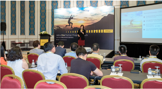 會(huì)議開始,大北歐中國(guó)區(qū)總裁 全球高級(jí)副總裁文婉瑜女士發(fā)表了開幕致辭。致辭中文婉瑜女士對(duì)大家的到來表達(dá)了誠(chéng)摯的歡迎,并簡(jiǎn)要介紹了“Jabra One合作伙伴計(jì)劃”的目標(biāo),衷心希望能與合作伙伴密切協(xié)作,發(fā)展出長(zhǎng)久、友好的合作關(guān)系。