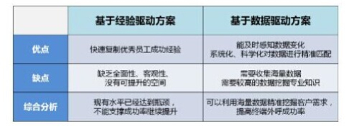 外呼營銷的關(guān)鍵環(huán)節(jié)是對外呼目標客戶的精準選擇。傳統(tǒng)方法選取外呼目標客戶,是根據(jù)多年市場營銷工作經(jīng)驗,人工手工方式設(shè)定目標用戶提取規(guī)則及相應(yīng)閾值。這種方式使用的用戶特征通常只有5個左右,特征太多人腦就無法復(fù)雜處理了,如通常根據(jù)用戶ARPU值、用戶在網(wǎng)年限等特征篩選目標用戶,目標用戶篩選粒度粗,外呼營銷成功率較低。傳統(tǒng)方法是話音經(jīng)營時代產(chǎn)物,話音時代用戶行為特征相對單一。當前流量經(jīng)營時代用戶以使用數(shù)據(jù)業(yè)務(wù)為主,用戶行為特征復(fù)雜,需要采用大數(shù)據(jù)分析方法才能有效刻畫用戶行為。大數(shù)據(jù)分析基于海量數(shù)據(jù)從上萬維度去預(yù)測有意愿接受4G的目標用戶群體,并及時反映趨勢的變化,真正做到超細分、微營銷。