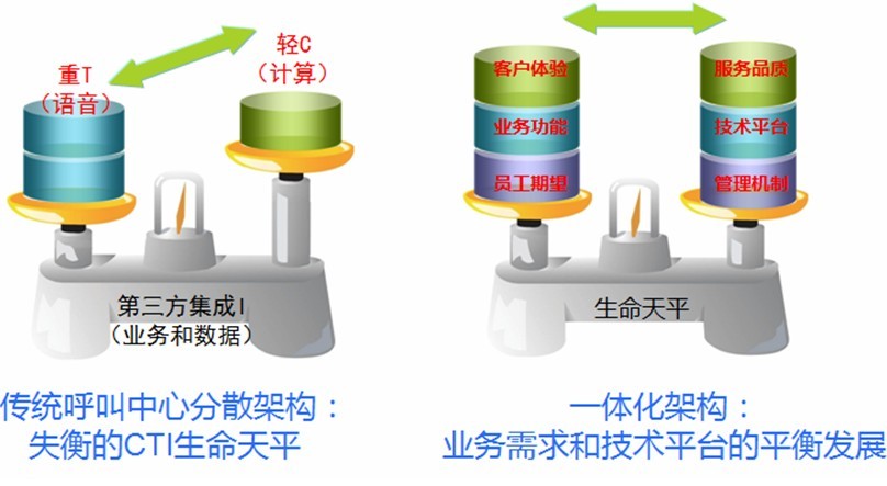 一體化架構(gòu),解決了傳統(tǒng)呼叫中心架構(gòu)的不平衡。是一種動態(tài)的生長、適應(yīng)和實現(xiàn)的平衡方式,是一種持續(xù)改進的機制。面對客戶業(yè)務(wù)發(fā)展和變化時,可以做到隨需而變、動態(tài)發(fā)展,而不影響整體系統(tǒng)的穩(wěn)定性。