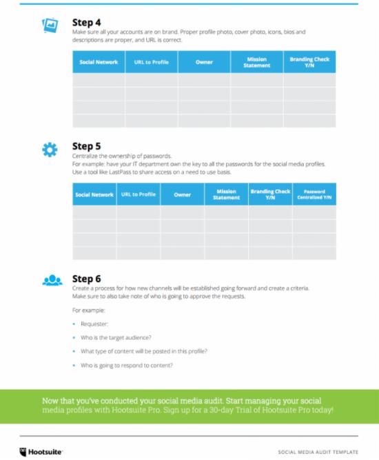 以下是一份社交媒體評(píng)估模板,你可以跟隨步驟完成評(píng)估。你要清醒地了解能代表你公司的每一個(gè)社交媒體賬號(hào),誰(shuí)在運(yùn)營(yíng)他們,他們的服務(wù)宗旨是什么。這個(gè)評(píng)估應(yīng)該定期進(jìn)行,尤其是當(dāng)你評(píng)估你的企業(yè)時(shí)。