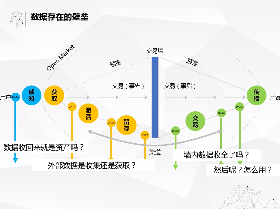 第二個問題數(shù)據(jù)的問題,當(dāng)我?guī)ш犆芍劬M(jìn)航空公司的時候我覺得航空公司都在守著一個金礦,但是當(dāng)我真正了解下來發(fā)現(xiàn)沒有人在挖它,很多航空公司在之前一直在收集客戶的乘機(jī)人的數(shù)據(jù),存他們的會員號、身份證號、手機(jī)號以及一些乘機(jī)的行為,告訴我們說這是我們乘機(jī)人的數(shù)據(jù)資產(chǎn),那到今年已經(jīng)有越來越多的公司開始關(guān)注到哪些人在用他們的APP,哪些人在關(guān)注他們的官網(wǎng),甚至哪些人在網(wǎng)上發(fā)有關(guān)這些航空公司的言論,他們已經(jīng)開始關(guān)注外部數(shù)據(jù)了,同時有一部分航空公司開始把外部數(shù)據(jù)作為自己的資產(chǎn)運(yùn)營,但是我要問一個問題,真的是所有的數(shù)據(jù)都是資產(chǎn)嗎?資產(chǎn)的概念第一要流動,第二要用,所有的航空公司可以了解一下自己的常旅客數(shù)據(jù),存下來的數(shù)據(jù)是靜態(tài)還是動態(tài)的,有沒有被前臺電商人員很好的使用,這是數(shù)據(jù)的問題。