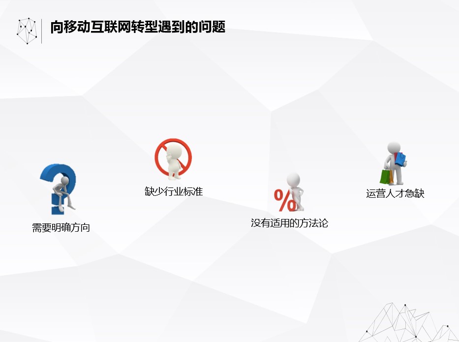 航空行業(yè)現(xiàn)在有兩個巨大的問題,第一個運(yùn)營的問題。我們在融資的時候,經(jīng)常會回答投資人一個問題,用一句話形容一下你的企業(yè)是干什么的?我現(xiàn)在想請各個航空公司考慮一下能不能用一句話說一下你的APP到底是什么?是一個電商平臺?是一個流量入口?是一個服務(wù)窗口還是一個品牌的宣傳工具?到底是什么?這個行業(yè)里面到底有沒有移動互聯(lián)網(wǎng)的標(biāo)準(zhǔn),我曾經(jīng)看到兩個航空公司的領(lǐng)導(dǎo)坐在一起,A領(lǐng)導(dǎo)說我們航空公司APP活躍兩每個月在80%,B說在0.5%,這是什么問題?是因為A航空公司比B航空公司活躍度高了160倍嗎?其實不是,因為他們沒有統(tǒng)一的標(biāo)準(zhǔn), A航空公司的活躍量和B航空公司的活躍量根本就不是一個概念。同時航空公司移動互聯(lián)網(wǎng)化其實沒有一個真正的方法論,我問很多APP的運(yùn)營團(tuán)隊,我問你們?yōu)槭裁碅PP要做成這個樣子,他說因為領(lǐng)導(dǎo)喜歡這樣。