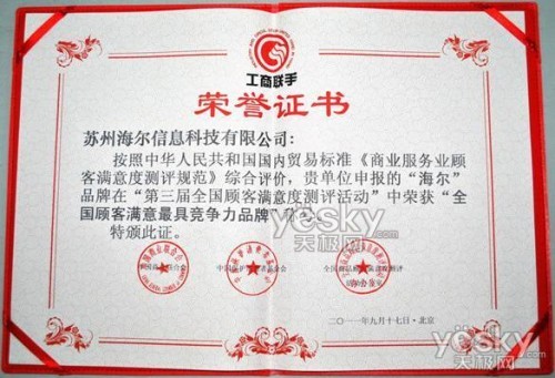 海爾電腦“潤心服務”除了在隨產品免費提供用戶高品質的基礎服務外,還為用戶提供了品種豐富性價比高的個性化增值服務,可以滿足用戶更高層次的服務需求。此次海爾電腦“潤心服務”榮獲全國顧客滿意最具競爭力品牌,是對其“用戶0抱怨+100%滿意”服務目標追求過程中的又一次褒獎。