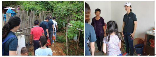 校內(nèi)捐贈完畢后,志愿者們分為兩組,一組為愛心小組,穿過曲折的山野小道,慰問幾家特困學生家庭及孤寡老人;另一組則留在校園中,與孩子們進行互動環(huán)節(jié)。愛心小組為貧困家庭及孤寡老人送去了大米、油、月餅等日常必需品及慰問金,用以緩解他們困苦的生活現(xiàn)況,向他們表達了企業(yè)及社會的關懷。我們的小小志愿者們主動為孤寡老人送上甜美的祝福與問候,讓老人在中秋佳節(jié)到來之前感受到來自企業(yè)及社會一份份親切的關懷。從這濃濃的關愛氛圍中,小小志愿者們也從中深切地學習及體會到了尊敬老人、愛護老人的中華傳統(tǒng)美德。