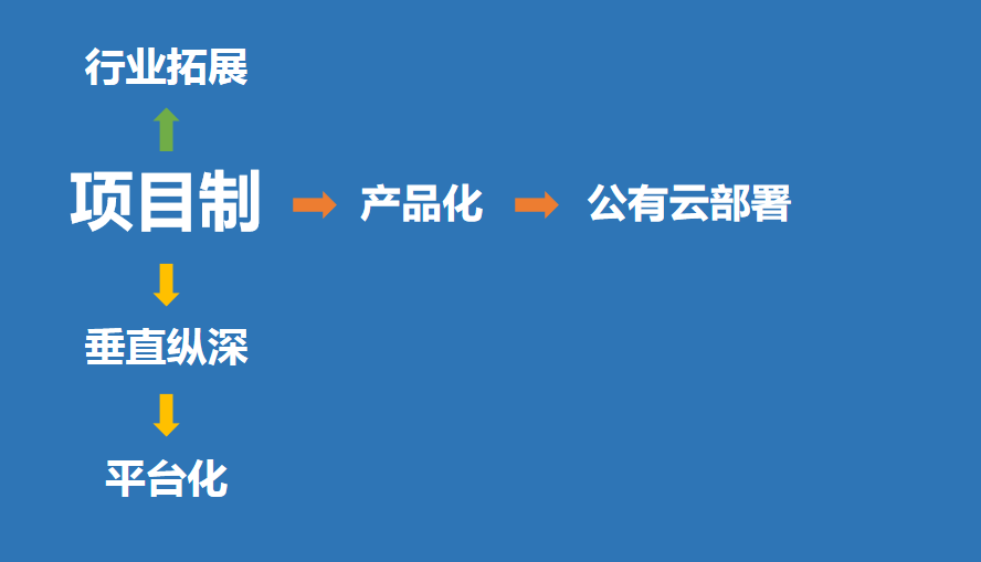 目前國內(nèi)AI產(chǎn)業(yè)主要有三條演進路徑,從項目制出發(fā):一條是最難獲取高利潤的多行業(yè)拓展模式,為了快速鋪大攤子、做大規(guī)模,或者尋求業(yè)務(wù)突破而進入到金融、醫(yī)療、零售等數(shù)個領(lǐng)域,多線作戰(zhàn);一條是專注于一個垂直行業(yè),把方案和服務(wù)做深做透,進而尋求在某一領(lǐng)域里實現(xiàn)平臺化;還有一條是先聚焦于算法的打磨,做好算法的產(chǎn)品化,再依托云平臺將算法對外服務(wù),并用云平臺的基礎(chǔ)設(shè)施能力幫助企業(yè)研發(fā)算法。