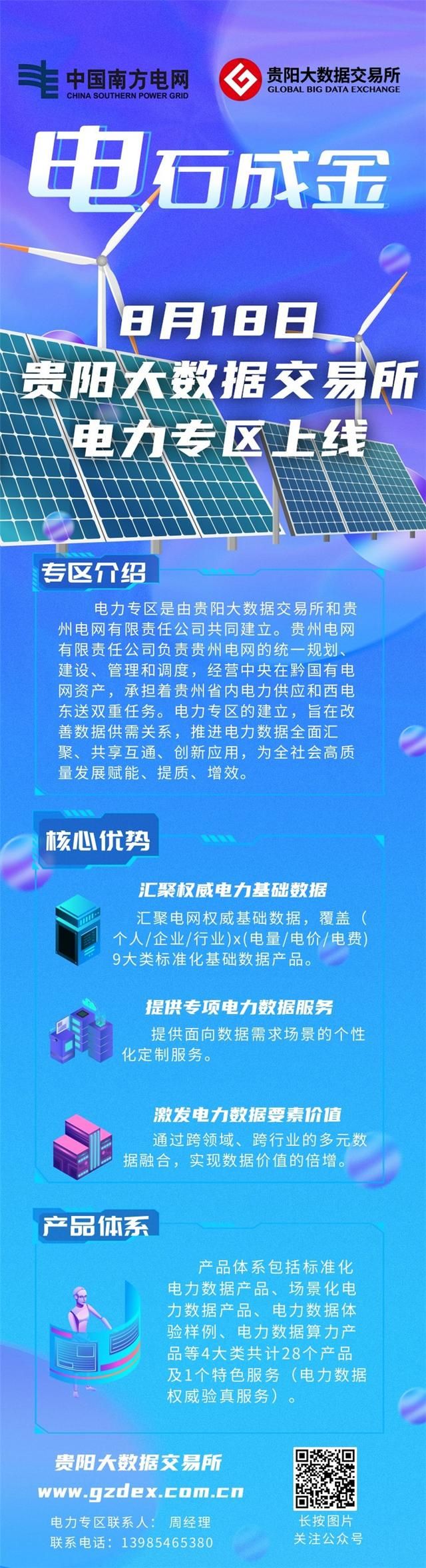 8月18日,貴陽大數(shù)據(jù)交易所“電力專區(qū)”正式上線,這是繼“氣象專區(qū)”成功上線后的又一行業(yè)優(yōu)質(zhì)數(shù)據(jù)資源供給。該“電力專區(qū)”將充分利用先行先試的優(yōu)勢,全力探索推進電力數(shù)據(jù)全面匯聚、共享互通、創(chuàng)新應用。