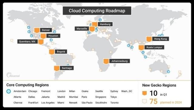 當(dāng)然,在整個(gè)計(jì)劃的推進(jìn)方面,Akamai也為Gecko推出了快節(jié)奏且務(wù)實(shí)的路線(xiàn)圖,具體來(lái)說(shuō),第一階段的目標(biāo)是在年底之前將支持虛擬機(jī)的計(jì)算融入100座城市。2024年,Akamai已在中國(guó)香港特別行政區(qū)、馬來(lái)西亞吉隆坡、墨西哥克雷塔羅和南非約翰內(nèi)斯堡以及沒(méi)有集中式超大規(guī)模提供商運(yùn)營(yíng)的城市(例如,哥倫比亞波哥大、美國(guó)科羅拉多州丹佛、美國(guó)德克薩斯州休斯敦、德國(guó)漢堡市和法國(guó)馬賽)部署了新的Gecko架構(gòu)區(qū)域。Akamai計(jì)劃在第一季度結(jié)束前在智利圣地亞哥部署第10個(gè)Gecko區(qū)域。除了這10個(gè)新的Gecko位置及現(xiàn)有的25個(gè)核心計(jì)算區(qū)域外,Akamai還打算在接下來(lái)幾年內(nèi)將其全球云計(jì)算能力擴(kuò)展到數(shù)百個(gè)城市。