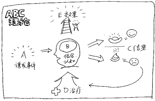 ABC理論是來(lái)源于心理學(xué)家Ellis著名認(rèn)知療法,A是就是事件(Activating events),B就是我們的信念(Beliefs),C是反應(yīng)和結(jié)果(Consequence),艾麗斯認(rèn)為,人的情緒反映不是由某一誘發(fā)事件的本身所引起,而是由經(jīng)歷了這一件事的人對(duì)這一事件解釋的評(píng)價(jià)所產(chǎn)生的。