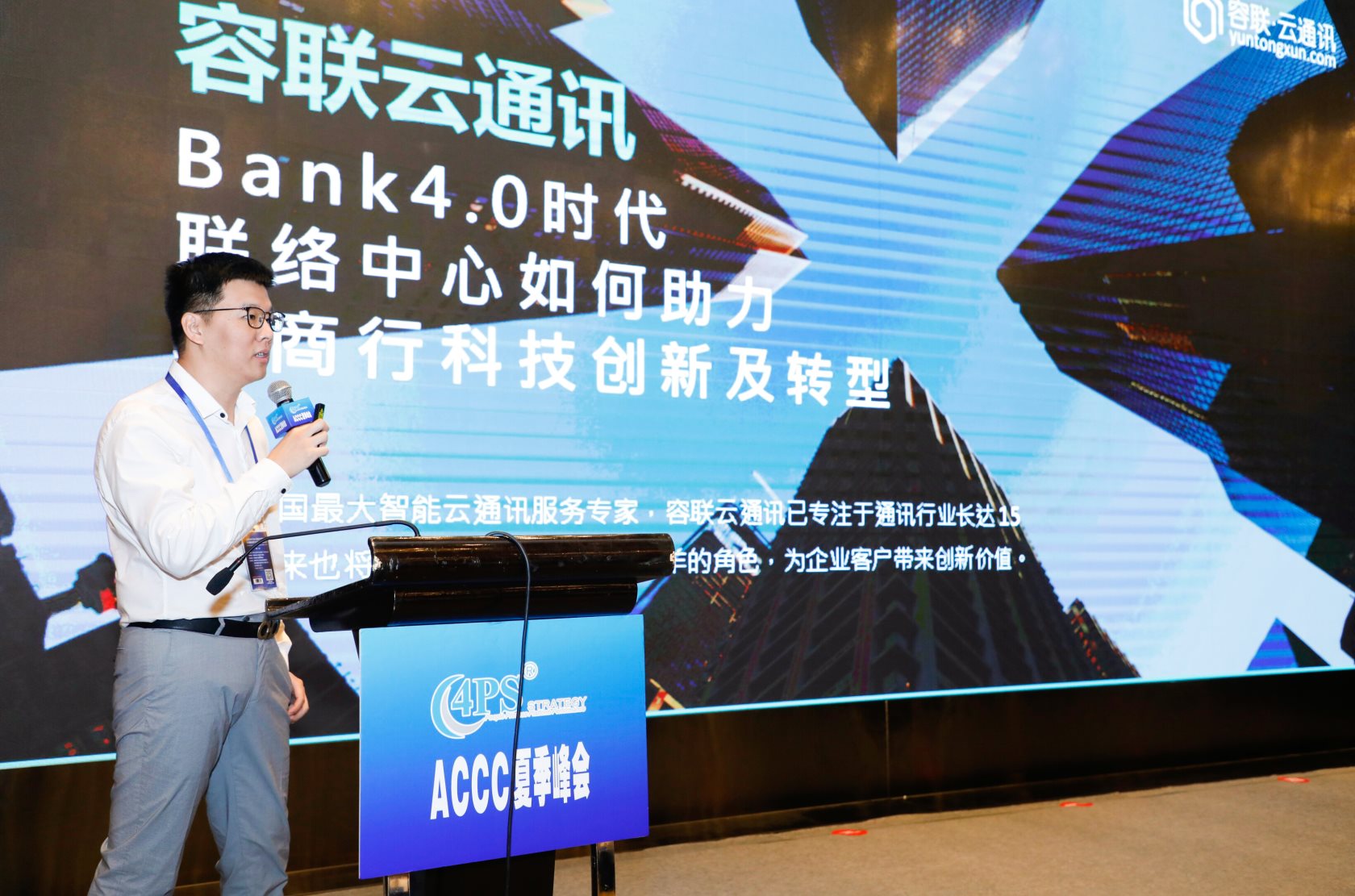 容聯(lián)·云通訊解決方案總監(jiān)陳杰做了主題為“ Bank4.0時代,聯(lián)絡中心如何助力城商行科技創(chuàng)新及轉型”的演講。