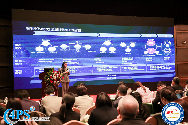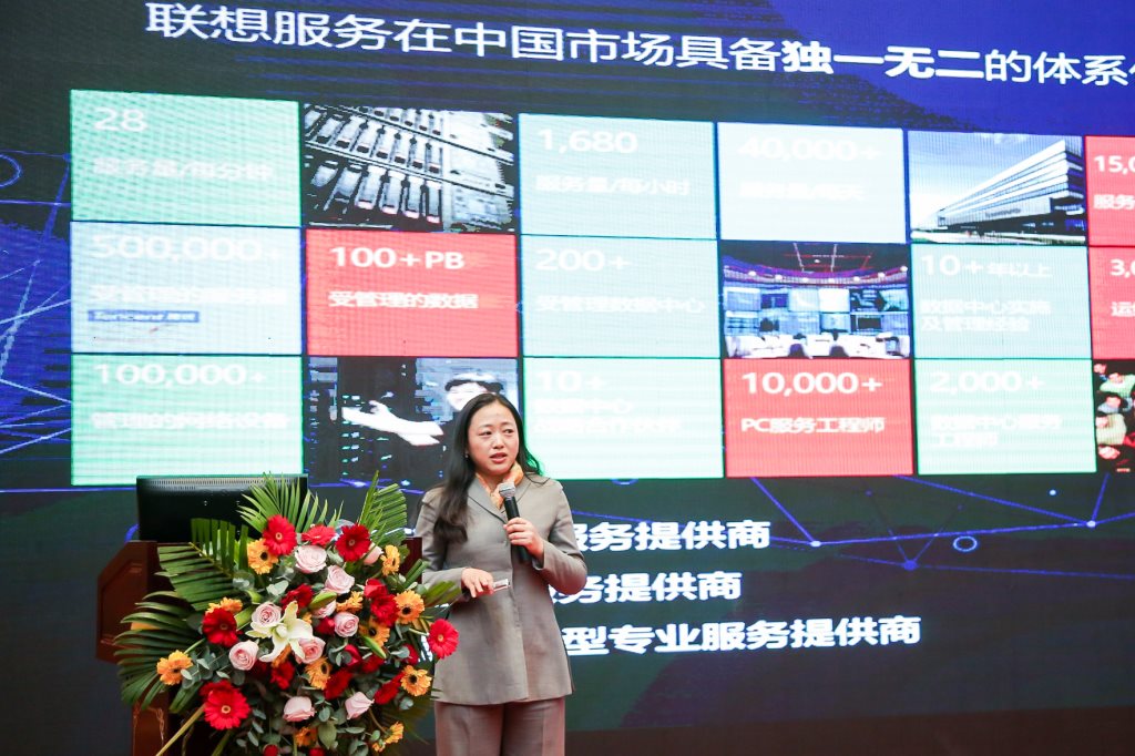 聯(lián)想服務(wù)消費服務(wù)業(yè)務(wù)總經(jīng)理楊潔做了主題為智能化引領(lǐng)服務(wù)全旅程的演講。