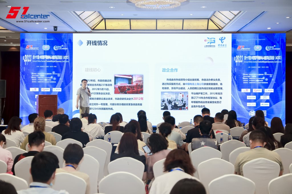 會(huì)議期間上海12345市民服務(wù)熱線運(yùn)營(yíng)中心副主任蔣勇進(jìn)行了主題為“用心用新、助力城市政務(wù)服務(wù)”的演講。