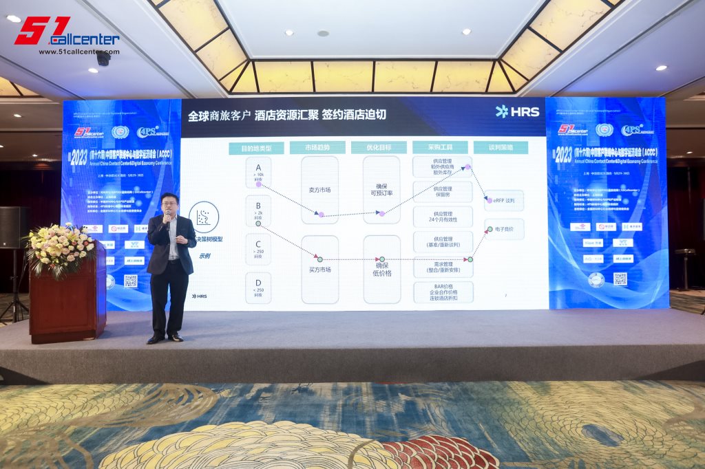 會議期間HRS大中華區(qū)總經(jīng)理丁海進(jìn)行了主題為“商旅外呼新篇”的演講。