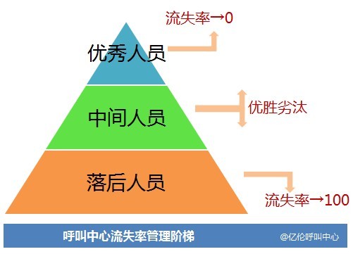億倫呼叫中心認為,流失率背后真正的運營目標是:通過分層次化的趨勢管理,沉淀優(yōu)秀人員,淘汰末尾人員。即讓優(yōu)秀的人員流失率→0,讓中間人員通過優(yōu)勝劣汰要么成為鐵打的營盤、要么成為流水的兵,讓差的和末尾人員流失率→100。