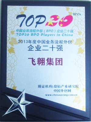 近日,“2013年中國業(yè)務(wù)流程外包企業(yè)二十強(qiáng)評(píng)選”(簡稱BPO TOP20)榜單在由鼎韜產(chǎn)業(yè)研究院與中國外包網(wǎng)傾力聯(lián)合打造的服務(wù)外包行業(yè)盛會(huì)——“2014領(lǐng)軍者年會(huì)”上隆重揭曉。飛翱集團(tuán)繼2010年、2012年后第三次蟬聯(lián)該獎(jiǎng)項(xiàng),在飛翱BPO業(yè)務(wù)十七年之際再獲業(yè)界殊榮與肯定。