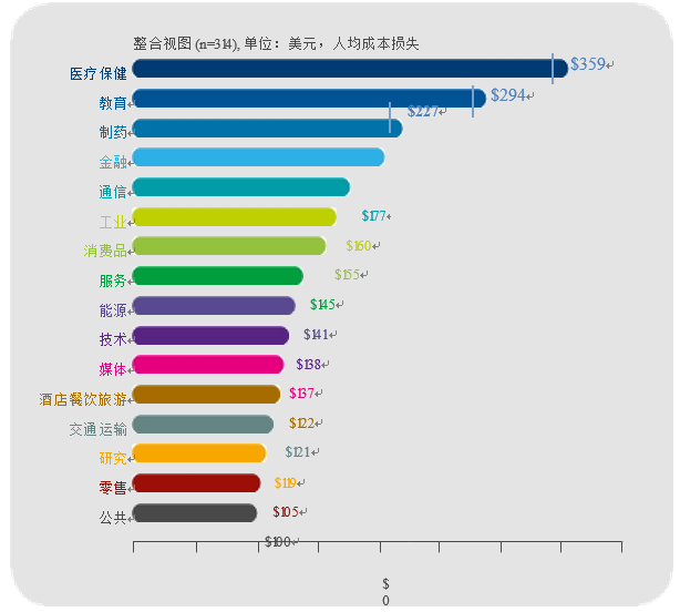 圖2:按行業(yè)分類的人均成本損失 (波耐蒙研究所,《2014年波耐蒙數(shù)據(jù)泄露成本研究》)(Ponemon Institute,“2014PonemonCost of DataBreachStudy”)