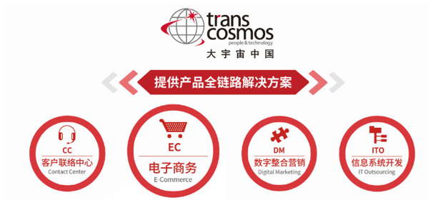 transcosmos在中國(guó)的業(yè)務(wù)不僅包括電子商務(wù)服務(wù),同時(shí)涵蓋客戶聯(lián)絡(luò)中心、系統(tǒng)開(kāi)發(fā)和整合營(yíng)銷等一站式解決方案和外包服務(wù)。作為全球BPO行業(yè)的領(lǐng)袖企業(yè),transcosmos今后將繼續(xù)致力于在消費(fèi)者為主導(dǎo)的數(shù)字化商業(yè)環(huán)境中,為企業(yè)提供能夠提高業(yè)務(wù)效率和縮減成本的綜合型服務(wù)。