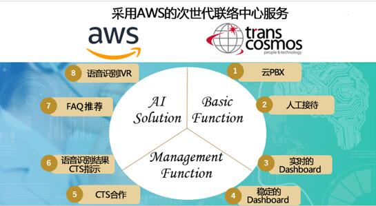 transcosmos集團(中文名:大宇宙集團;以下簡稱:transcosmos;總部:日本東京;總裁兼COO:奧田昌孝;東證代碼:9715)基于Amazon Web Services Japan(以下簡稱:AWS) 將于近日在東京地區(qū)發(fā)布的云聯(lián)絡(luò)中心“Amazon Connect”,開發(fā)并面向企業(yè)客戶提供新型的聯(lián)絡(luò)中心服務(wù)。