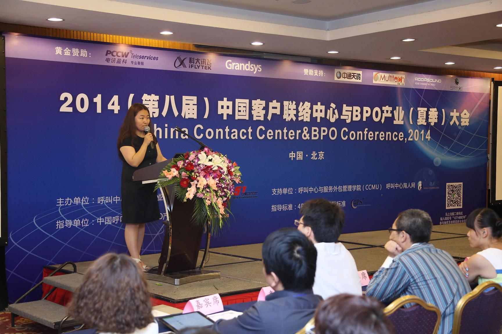 2014(第八屆)中國(guó)客戶聯(lián)絡(luò)中心與BPO(北京)夏季大會(huì)于2014年7月17日在北京隆重舉行。大會(huì)由呼叫中心與BPO行業(yè)資訊網(wǎng)(51Callcenter)主辦,中國(guó)呼叫中心與BPO產(chǎn)業(yè)聯(lián)盟(CNCBA)、4PS聯(lián)絡(luò)中心國(guó)際標(biāo)準(zhǔn)組織指導(dǎo),有來(lái)自于金融、通信、物流、電子商務(wù)、制造業(yè)、跨國(guó)企業(yè)等行業(yè)管理層;及聯(lián)絡(luò)中心、客戶服務(wù)、云計(jì)算、服務(wù)外包、CRM、社會(huì)化媒體、企業(yè)通信等行業(yè)眾多嘉賓參加了該活動(dòng)。